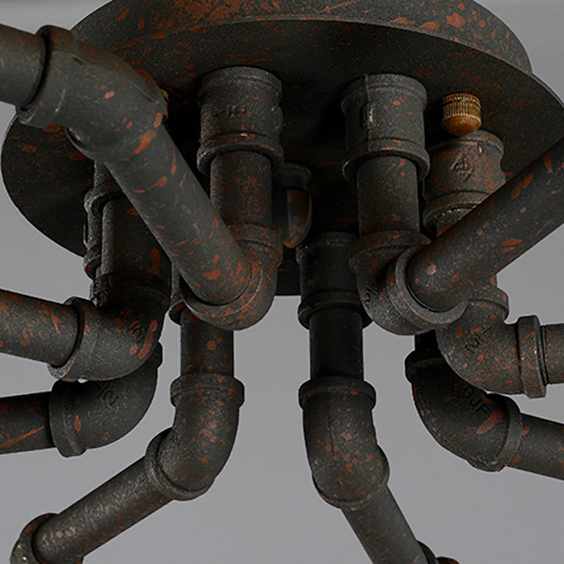Black/Bronze Metal Twisted Pipe Semi Flush Light Fixture For Restaurant - 4/6/8 Bulbs 8 / Rust
