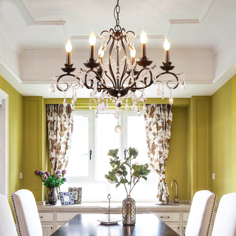 Modern Crystal Chandelier - Black Candle Ceiling Pendant Light Fixture (6/8 Bulbs)
