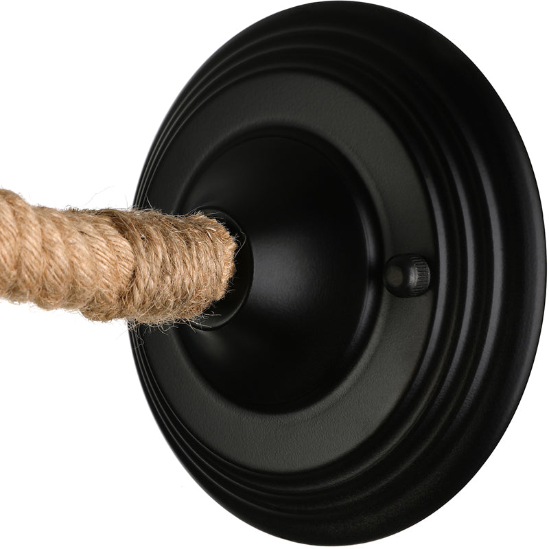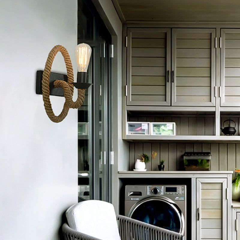 Industrial Black Wall Light with Roped Gooseneck Arm and Circle Mount for Balcony