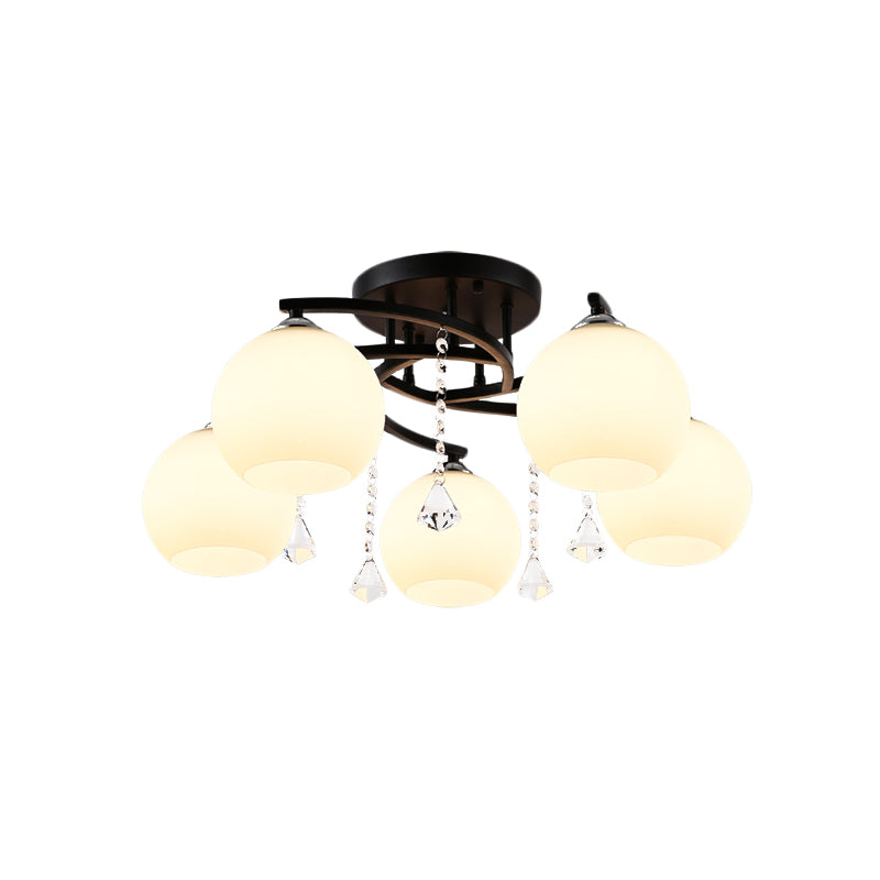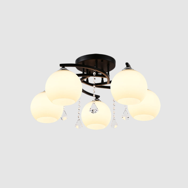 Modern Black Finish Sphere Semi Flush Lamp with Cream Glass - 5-Bulb Spiral Flush Mount Lighting Fixture