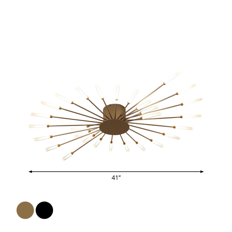 Contemporary Black/Gold Ceiling Light Fixture with Acrylic LED for Bedroom - Semi Flush Mounted (12/18/28 Lights)