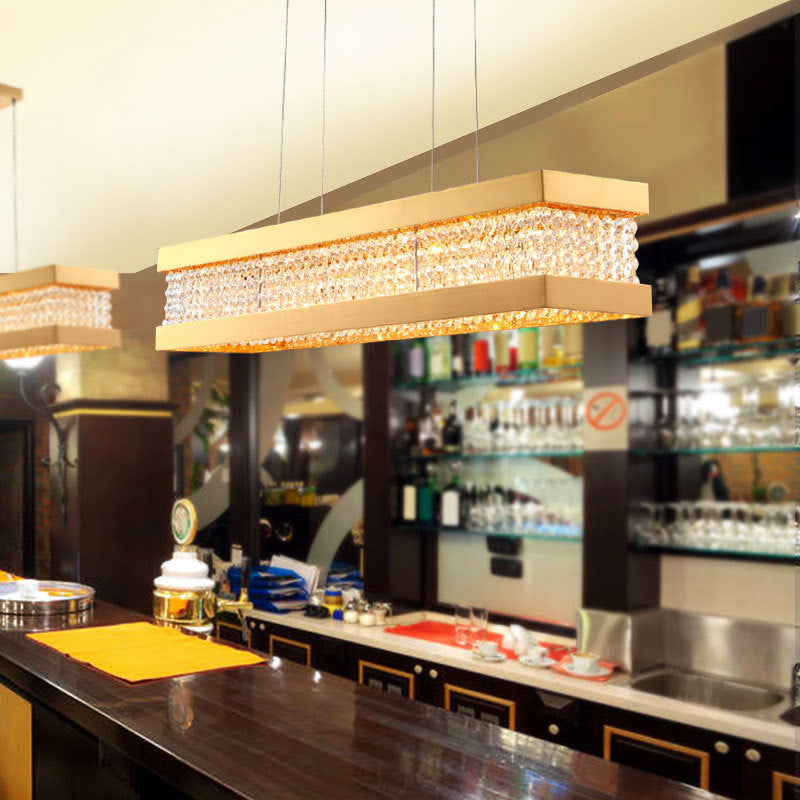 Contemporary Black/Gold Crystal Island Pendant Lighting - Rectangle Shape 6/7/9 Lights