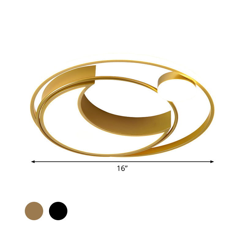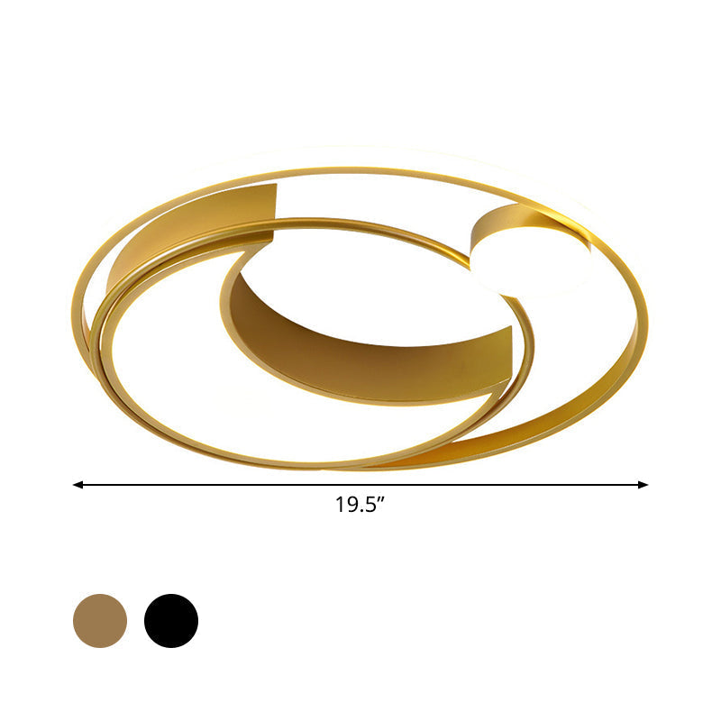 Modern Black/Gold Waxing Moon Flush Mount Light - Acrylic LED Ceiling Lighting with Orbital Side Design - 16"/19.5" Dia - Warm/White Light