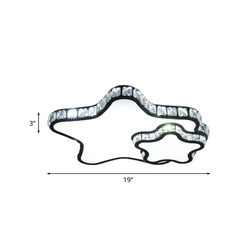 Modern Black LED Flush Ceiling Light with Clear Crystal Double Star Design