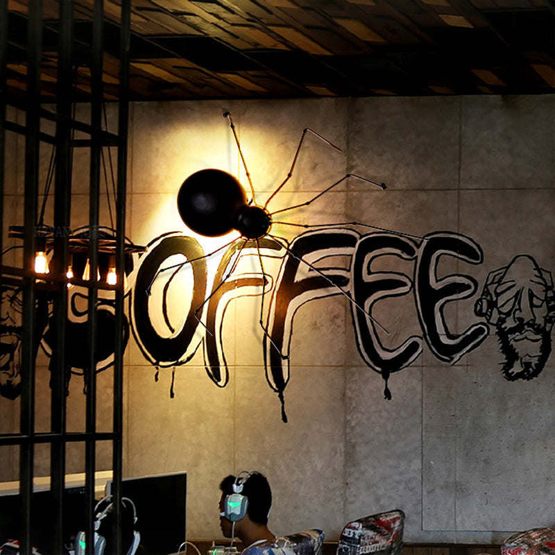Industrial Black Spider Single Light Wall Sconce for Kids' Bedroom