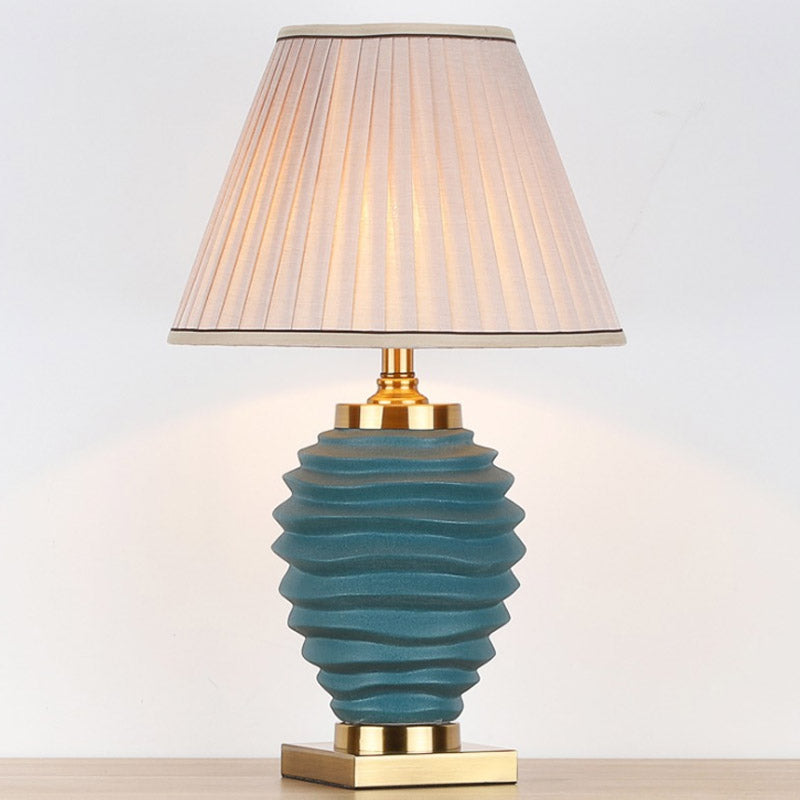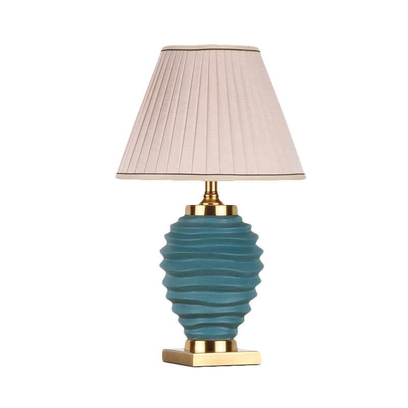 Tiered Vase Night Lamp - Traditional Ceramic 1 Head Bedroom Nightstand Light, Black/White, with Pleated Fabric Shade