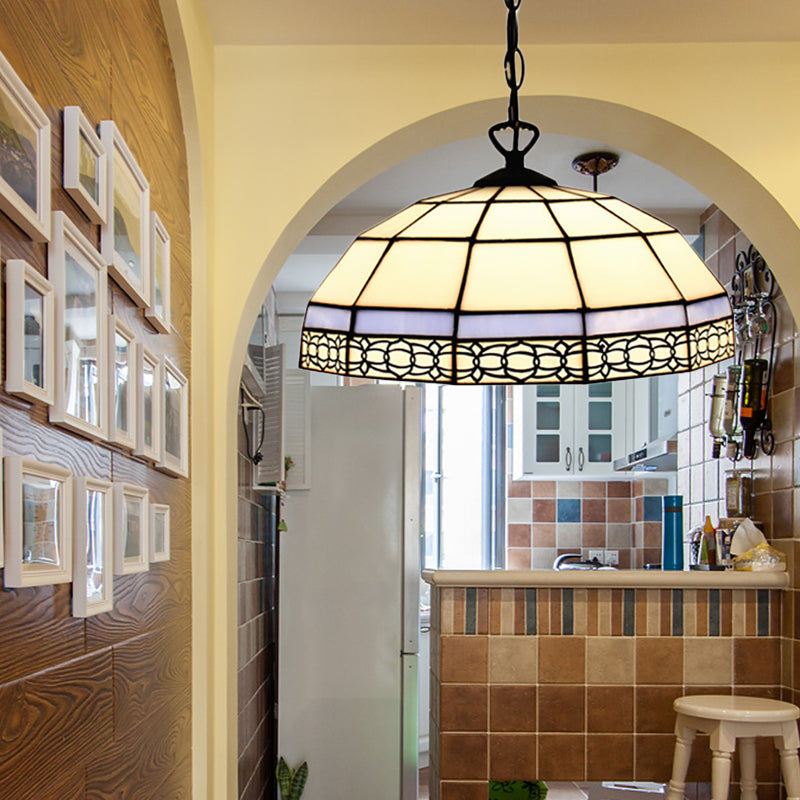 Tiffany Hand Cut Glass Bowl Suspension Light In Blue/Green For Living Room