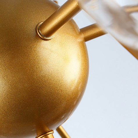 The "Branching Chandelier Light with Clear Glass Ball Shade" is a modern style ceiling light fixture that comes in black and white colors. It has a single tier and is made from metal. There are a total of 9, 27, 36, 45, 54, or 63 LED bulbs that come with the light, which are not included in the height or width measurements. The fixture itself measures 20.5 to 36.5 inches in width and 14 to 29.5 inches in height. The chain or cord length is 39 inches. The light is compatible with 110V-120V or 220V-240V voltages and has a G4 bulb base.