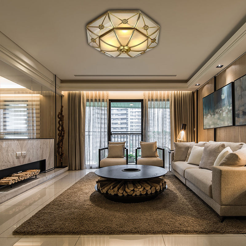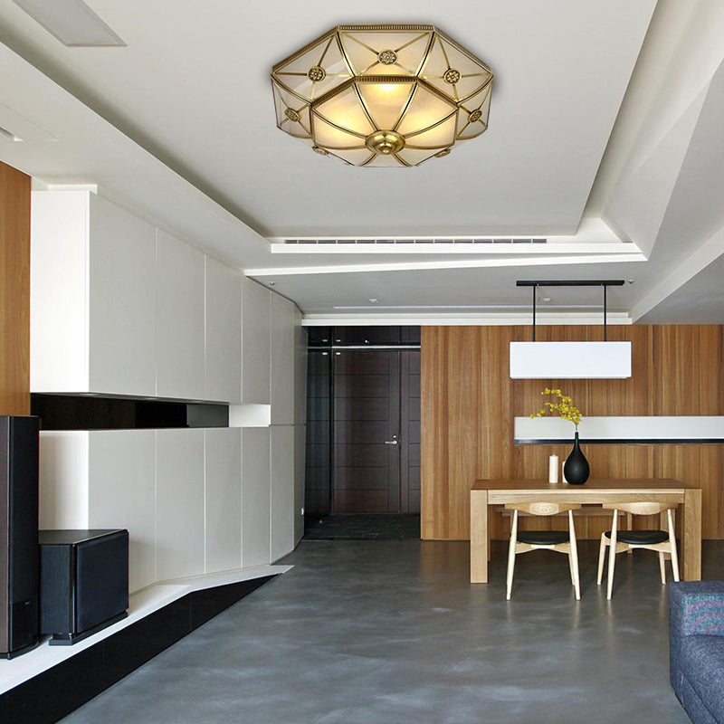 Traditional Brass Flush Mount Ceiling Light Fixture With Frosted Glass Flower Design For Bedroom