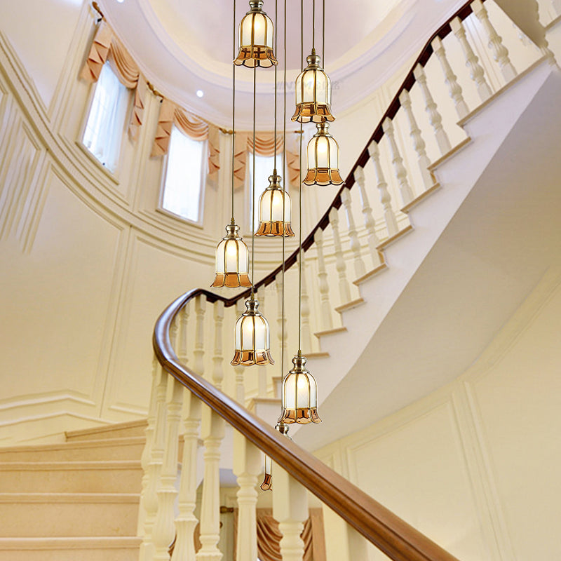 Colonial Milk Glass Floral Pendant with 8 Brass Bulbs