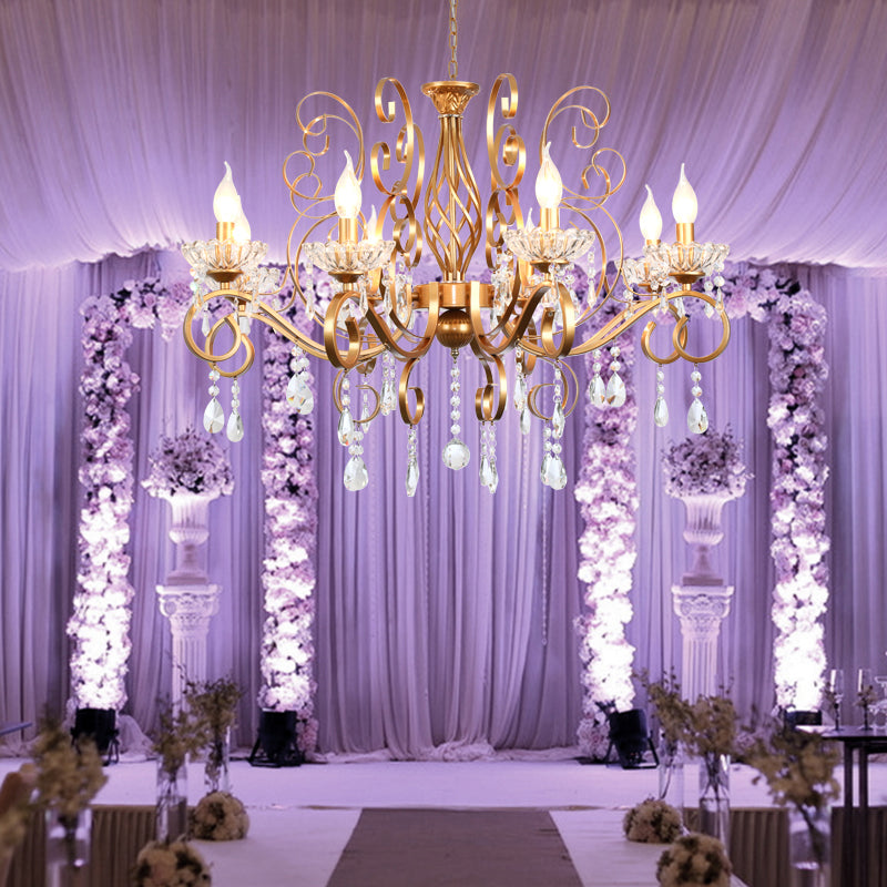 Retro Brass Candle Chandelier: Swirled Arm Pendant Lamp For Living Room With A Metallic Finish 8 /