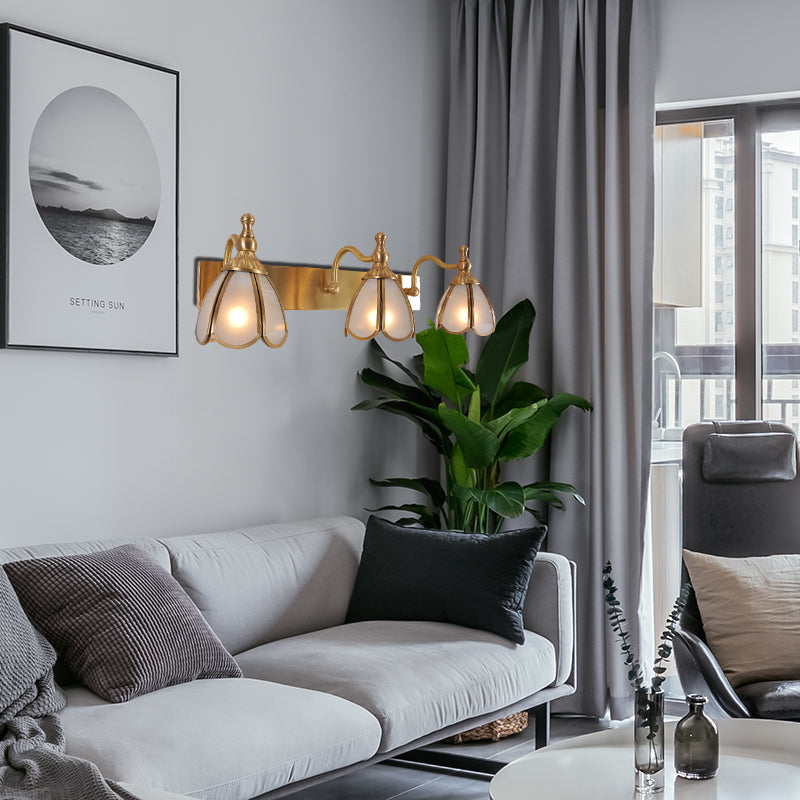Brass Flower Wall Sconce With Frosted Opal Glass - 1/2/3 Lights Rural Bathroom Vanity Lighting 2 /
