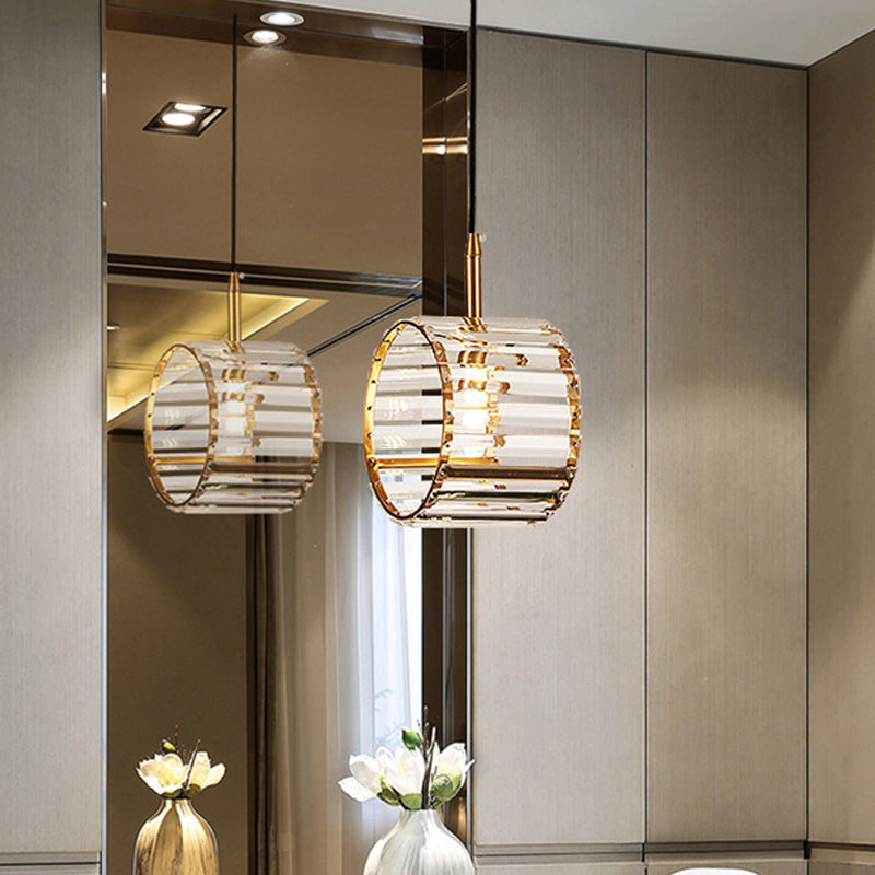 Mini Brass Wristband Pendulum Light With Crystal Prism – Stylish Dining Table Hanging Lamp Kit