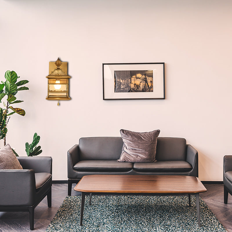 Traditional Brass Square Wall Lamp - 1-Light Living Room Wall Mount Lighting
