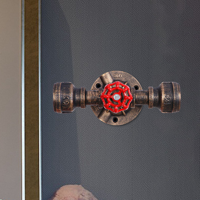 Antique Bronze Pipe And Valve Wall Sconce - 1 Light Lamp 8/10 Width / 10
