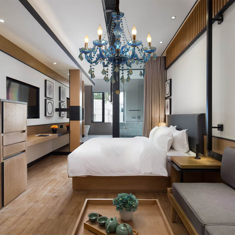 Modern Crystal Pendant Chandelier Blue Hanging Light 6/18 Bulbs Candle/Bell Design