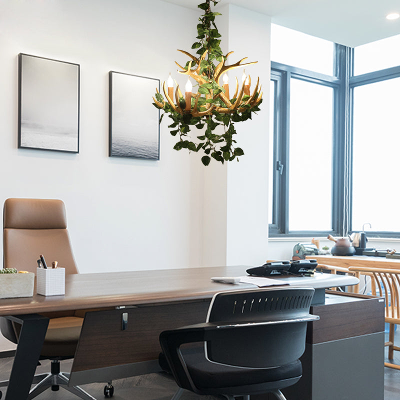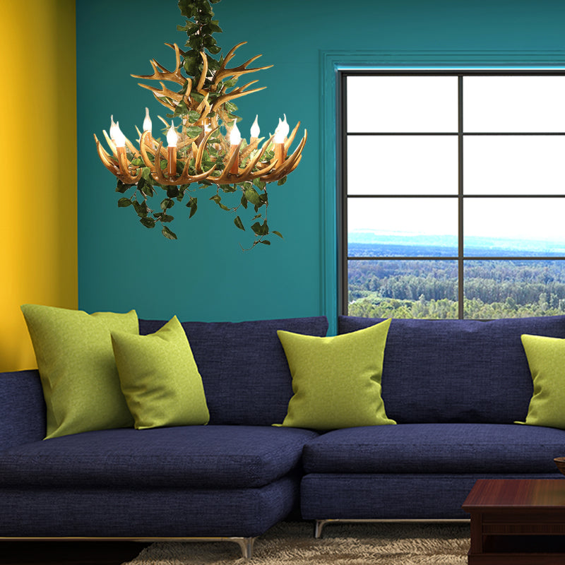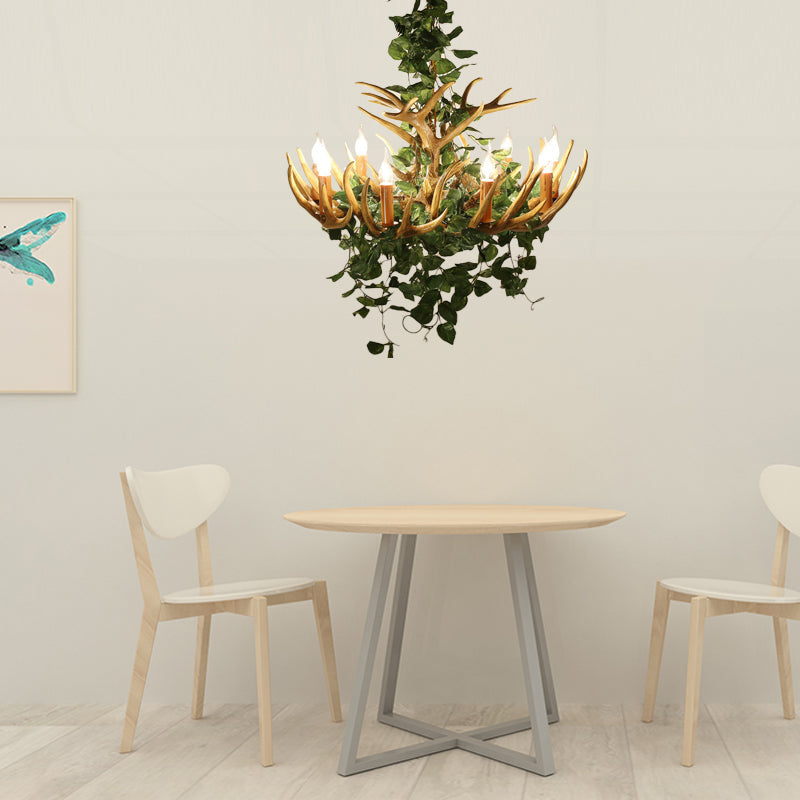 Rustic Resin Hanging Lamp - Candle Living Room Pendant Light with 4/6/12 Bulbs - Pink/Green Chandelier