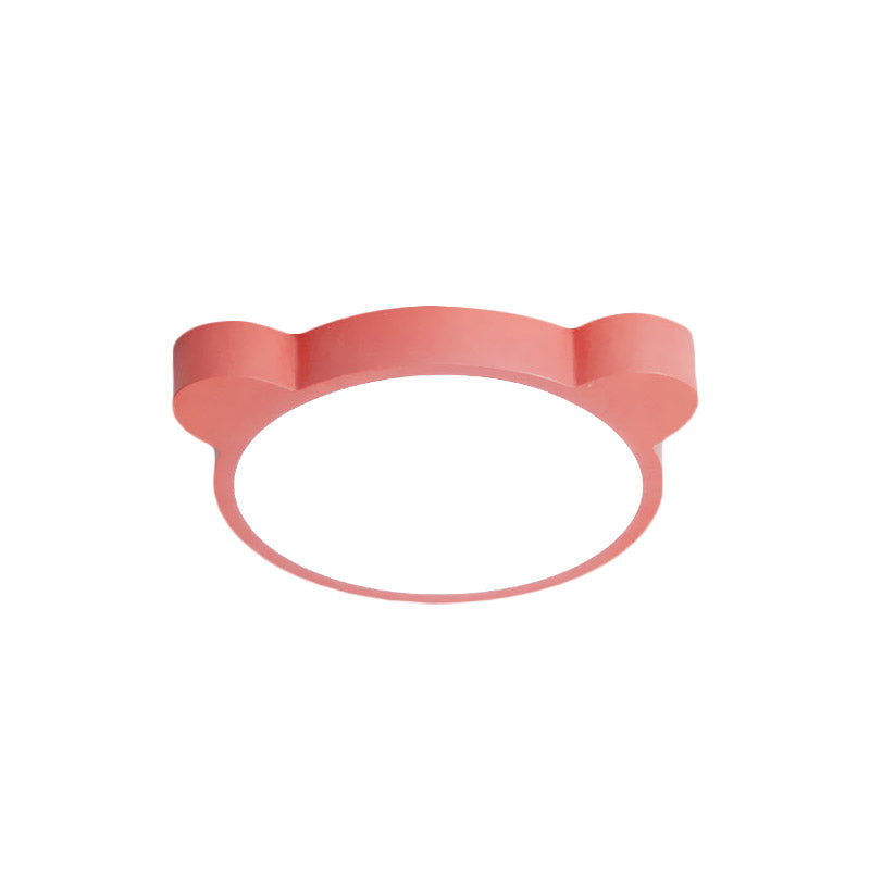 This product is a ceiling light in the shape of a cartoon bear's head, available in black, white, or pink. It is made of acrylic and has an LED light bulb, which is included. The light is suitable for a110V-120V or 220V-240V voltage and has a flushmount fixture type.