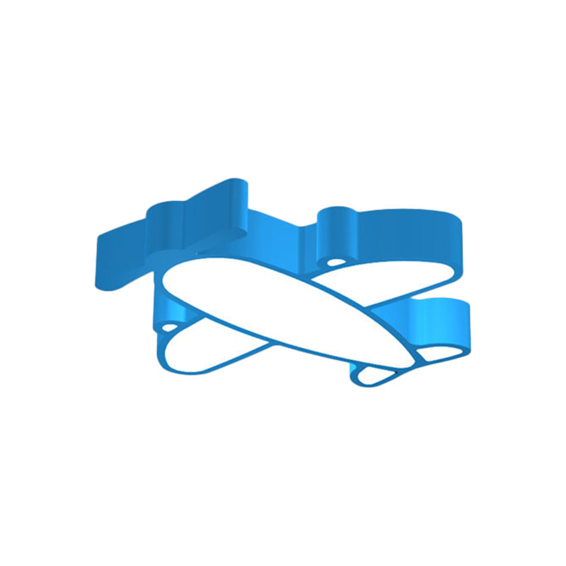 Led Cartoon Plane Flush Mount Ceiling Light With Acrylic Shade - Red Pink And Blue Green