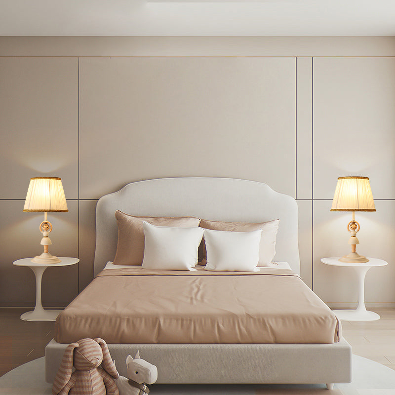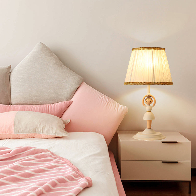 Whimsical Cartoon Table Light with Pleated Fabric - Single Bedside Nightstand Lamp in White
