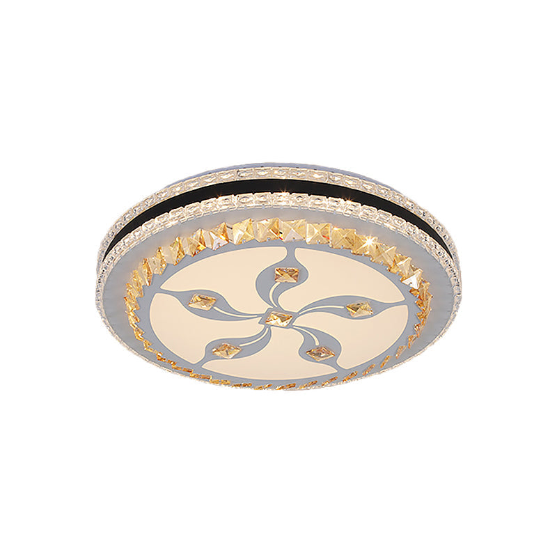 This contemporary Round Sleeping Room Flushmount Cut Crystal LED Ceiling Lamp with Cheery/Orange Pattern in Chrome will provide a beautiful glowing light to any room it is hung in. This ceiling lamp is available in sizes ranging from 15 to 19 inches, with a fixture width of 19.5", and fixture height of 4". Featuring a white color and modern design, this lamp is sure to make a statement. The light is powered by a 220V-240V and 110V-120V voltage, and the bulb is a SMD LED light type. The lamp is comprised of a sturdy and durable crystal material with a flushmount fixture type. The warm and inviting cheery/orange pattern on the chrome makes it an eye-catching piece of design. This LED ceiling lamp is sure to add a luxurious touch to any room it is placed in.