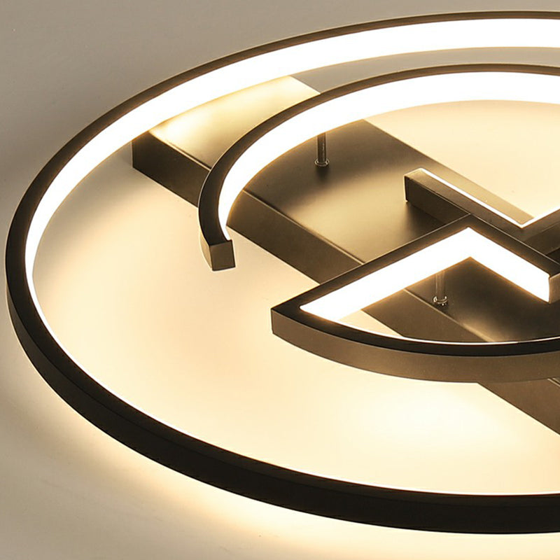 Metal Led Flush Light Fixture - Sleek Black Ceiling Lamp For Bedroom / 16.5 Third Gear
