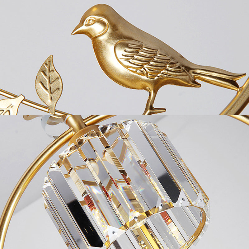 Vintage Style Clear Crystal Drum Ceiling Light With Bird Accent In Black/Gold Gold
