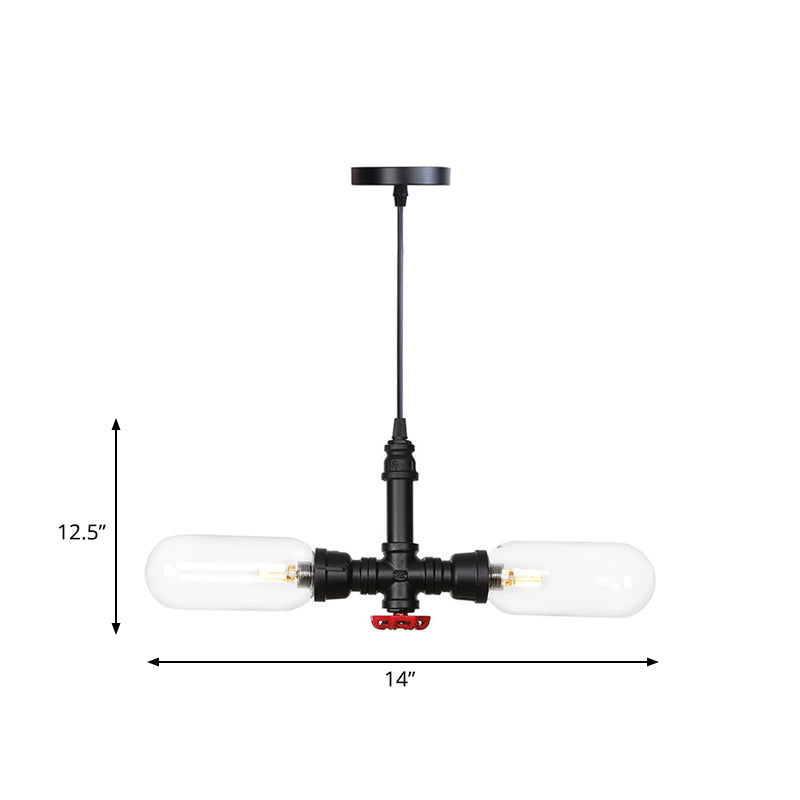 Laura - Black Clear Glass Capsule Shade Pendant Antiqued 2-Head Coffee Shop LED Ceiling Chandelier in Black with Pipe Design