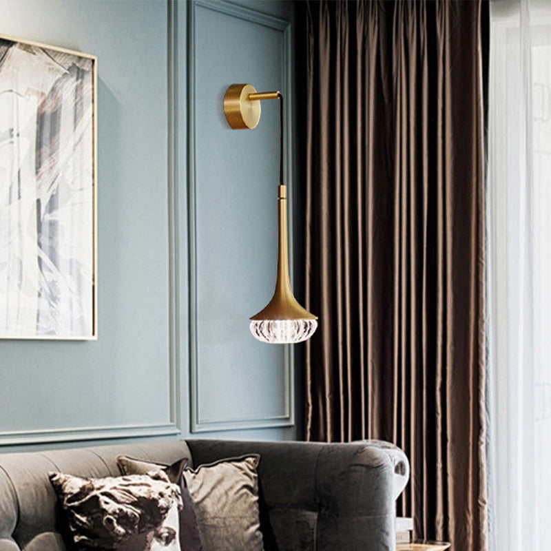This eye-catching Clear Textured Glass Flared Wall Light Sconce is the perfect way to give any room in your home a modern and stylish update. This modern wall mounted lighting fixture features a sleek gold and clear textured glass design that will look perfect in any living space. This durable and reliable fixture is sure to bring long-lasting illumination for many years to come. The size of the fixture is 5 to 9 inches and its height is 16 inches, with a width of 5.5 inches and a height of 15 to 19 inches. The fixture is powered by direct wired electric and has a stylish, modern design. It features a G9 bulb base and has a maximum voltage of 220V-240V 110V-120V. The shade is made of glass, and the fixture is available in a single light style. No bulb is included but LED bulbs are compatible. This product also comes with a one year warranty. This wall lamp is sure to bring a beautiful modern look to any room and provide years of reliable service.