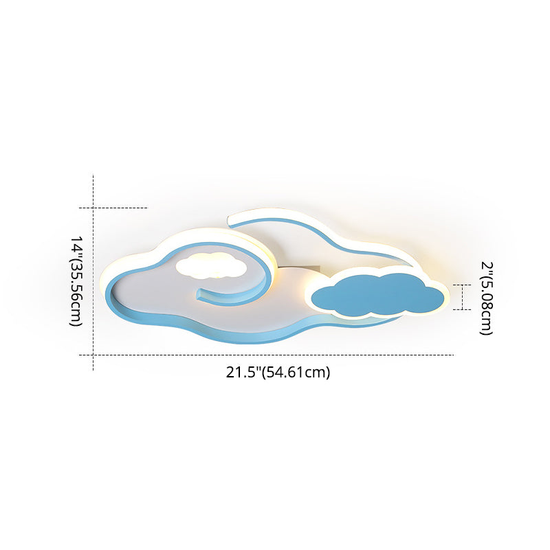 Blue Metal Led Flush Mount Ceiling Light For Cloud Kids Bedroom