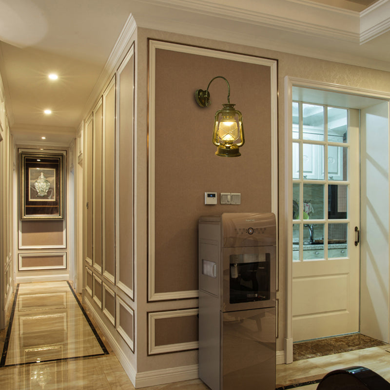 Coastal Lantern Wall Sconce: 1-Bulb Clear Glass Light In Black/Bronze/Copper For Corridor Copper