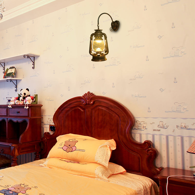 Coastal Lantern Wall Sconce: 1-Bulb Clear Glass Light In Black/Bronze/Copper For Corridor Bronze