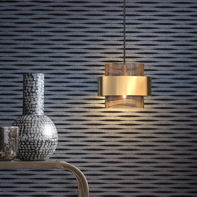 Cognac Glass Pendant Light Fixture With Nordic Design And Gold Ring Guard