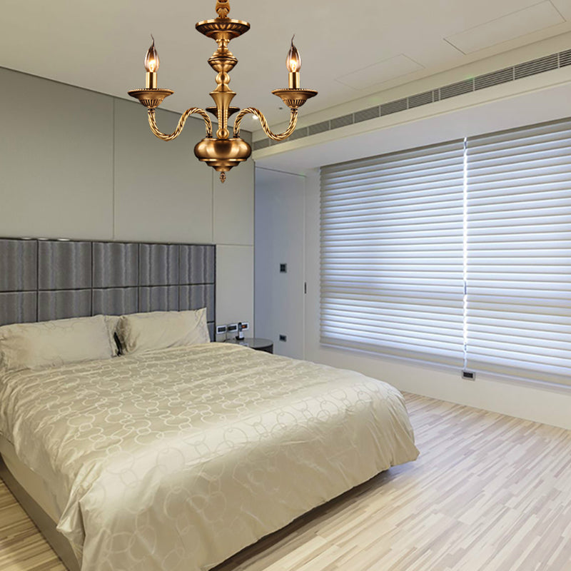 Brass Colonial Candle Chandelier Pendant Light with Curved Hemp Rope Arm - 3/5/6 Lights