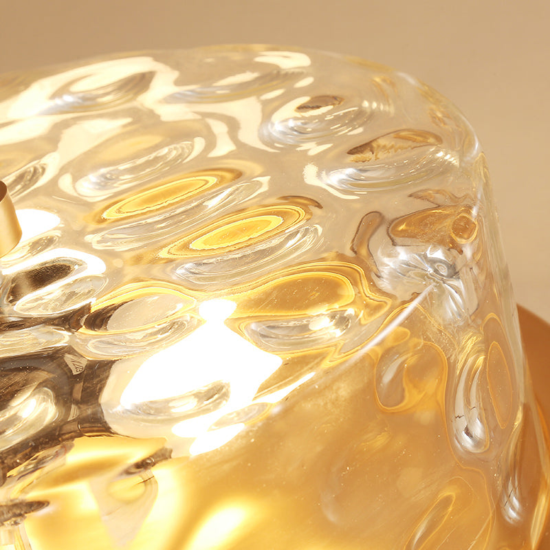 Colonial Drum Ceiling Light Fixture, Clear Dimple Glass, Brass Flush Mount for Living Room - 3 Bulbs