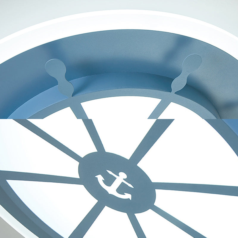 Nautical Flush Ceiling Light With Anchor Design For Bathroom Or Bedroom Blue / White
