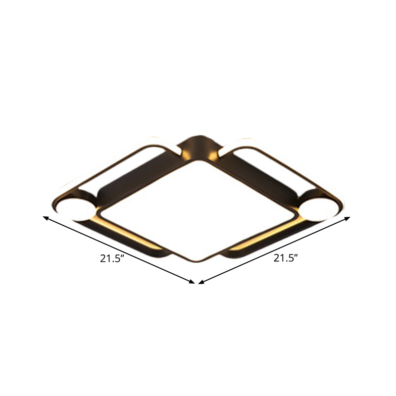 Modern Black Rhombus Led Ceiling Flush Mount For Bedroom - 18/21.5 Wide In Warm/White Light / 18