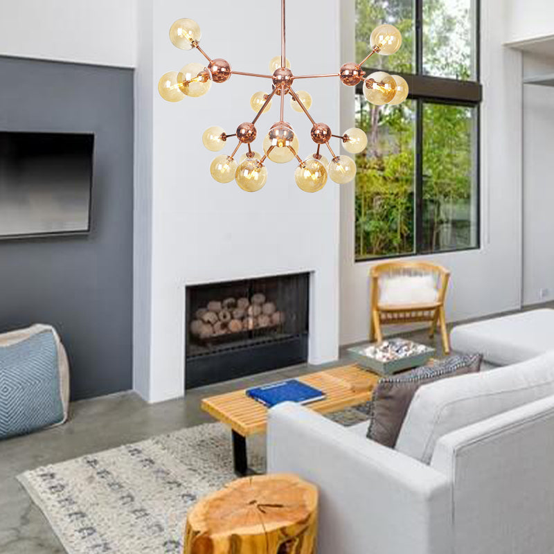 Vintage Copper Ceiling Chandelier With Glass Orb Shades - 3/9/12 Lights Branch Design Sizes