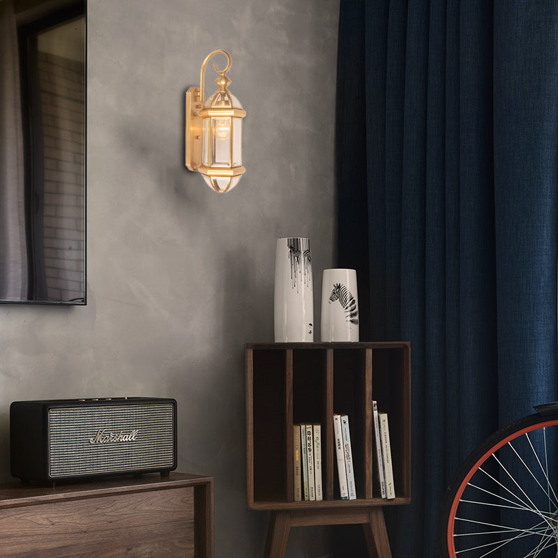Retro Curved Arm Brass Wall Sconce with Flush Mount for Living Room