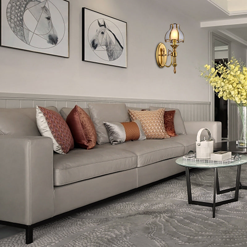 Traditional 1-Bulb Brass Metal Sconce Light: Curved Wall Fixture For Living Room