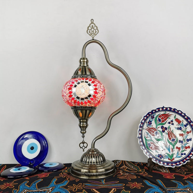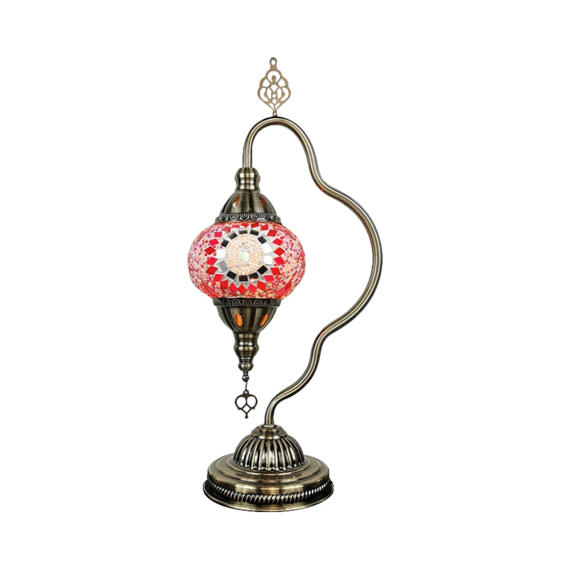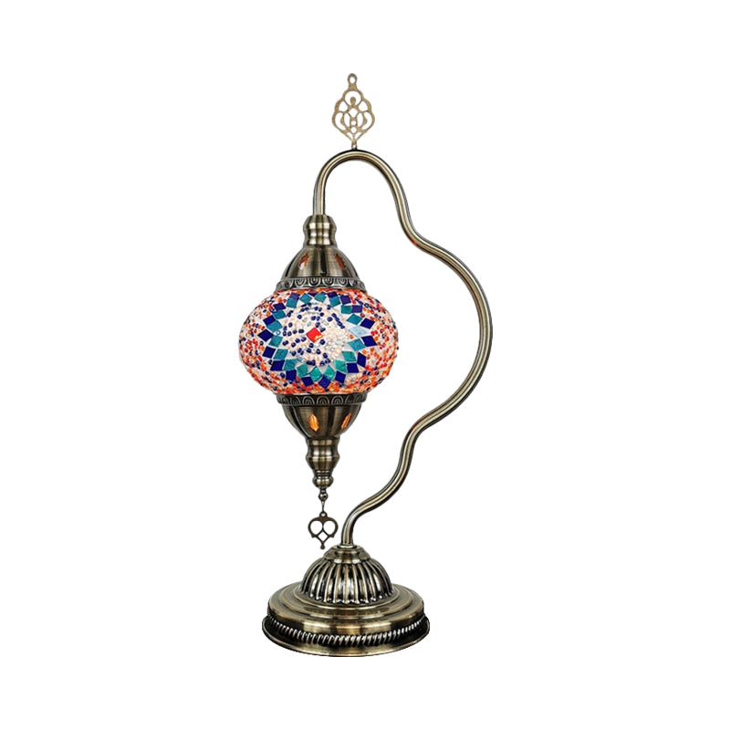 Art Deco Stained Glass Night Lamp - Curvy Arm, 1 Bulb Bedroom Nightstand Lighting (Red/Yellow/Orange)