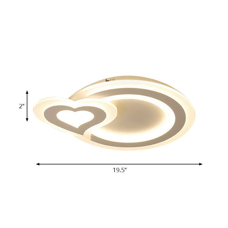 Sleek Flush Ceiling Mount Light - Acrylic White Finish Ideal For Adult Bedroom / Warm Loving Heart