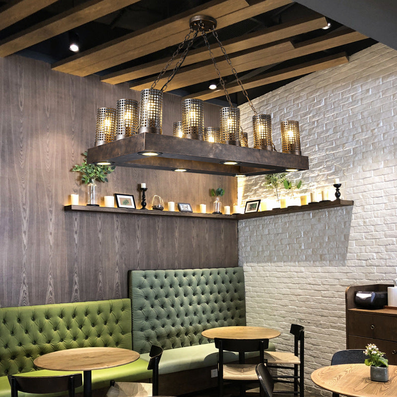 Vintage Metal Island Pendant Light Fixture - Cylinder Design with 18 Lights in Bronze/Black