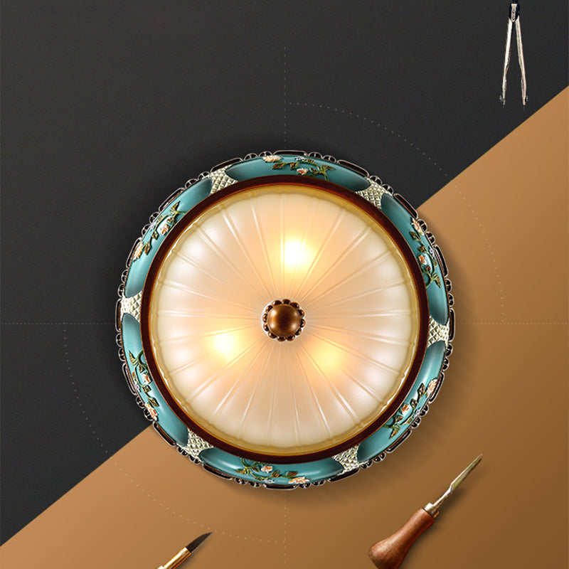 Vintage Frosted Glass Dome Flush-Mount Bedroom Ceiling Light 4 / Blue