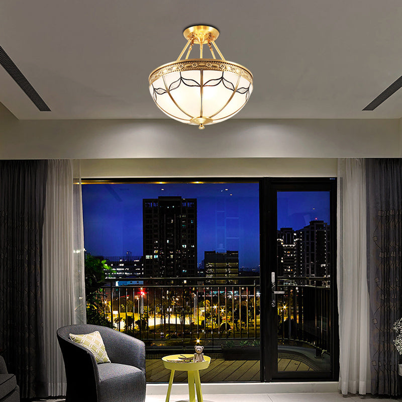 Vintage Opal Glass 4-Light Semi Flush Mount In Brass For Bedroom - 12.5/16 Wide