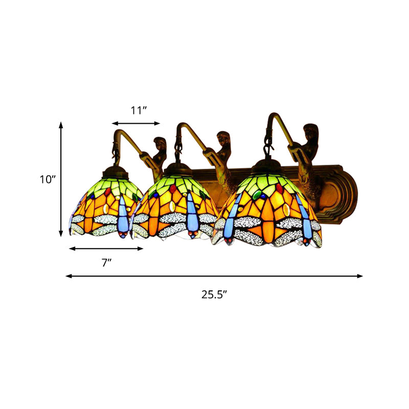 Baroque Dragonfly Wall Mount Sconce With 3 Orange Glass Heads - Bedroom Lighting