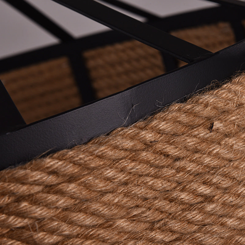 Industrial Metal Pendant Light - Drum Style With Rope Hanging Lamp In Black