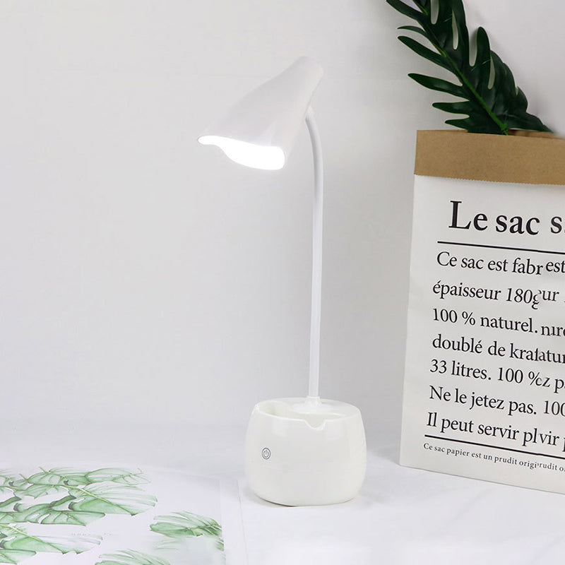 Flexible Gooseneck LED Desk Light with Pen Holder in Blue/Pink/White/Yellow, USB Charging, Eye-Caring for Reading