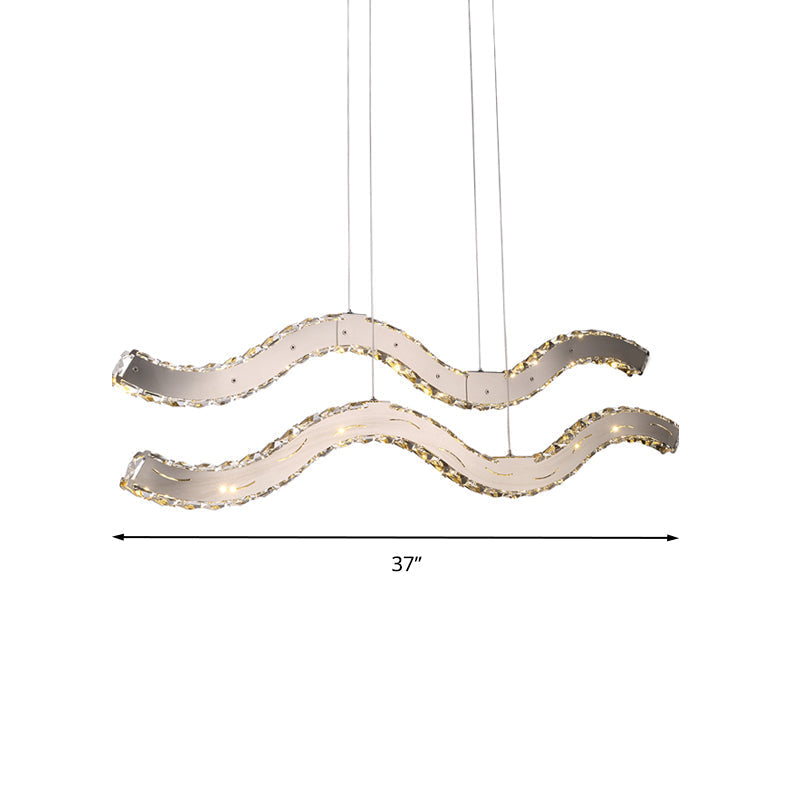 Chrome Crystal 2-Tier Led Chandelier For Dining Room - Modernist Hanging Ceiling Lamp