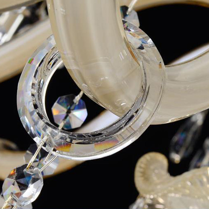 Modern 6/8/18-Light Faceted Crystal Candle Chandelier - Tan Ceiling Lamp for Living Room - Multiple Sizes